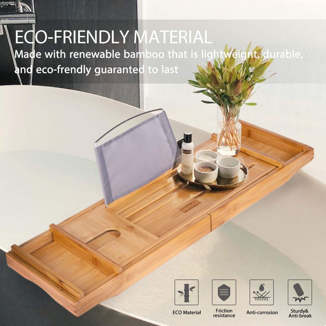 Bamboo bathtub caddy tray expandable for luxury bath,bath accessories & table with wine glass holder,book stand bathroom organizer with extending sides for men/women,free soap holder,black. Bamboo wood bathtub tray with extending sides. So, read on and pick it up. To pick the perfect bathtub tray, first determine the activities you'd like to do while bathing. It has one compartment and.